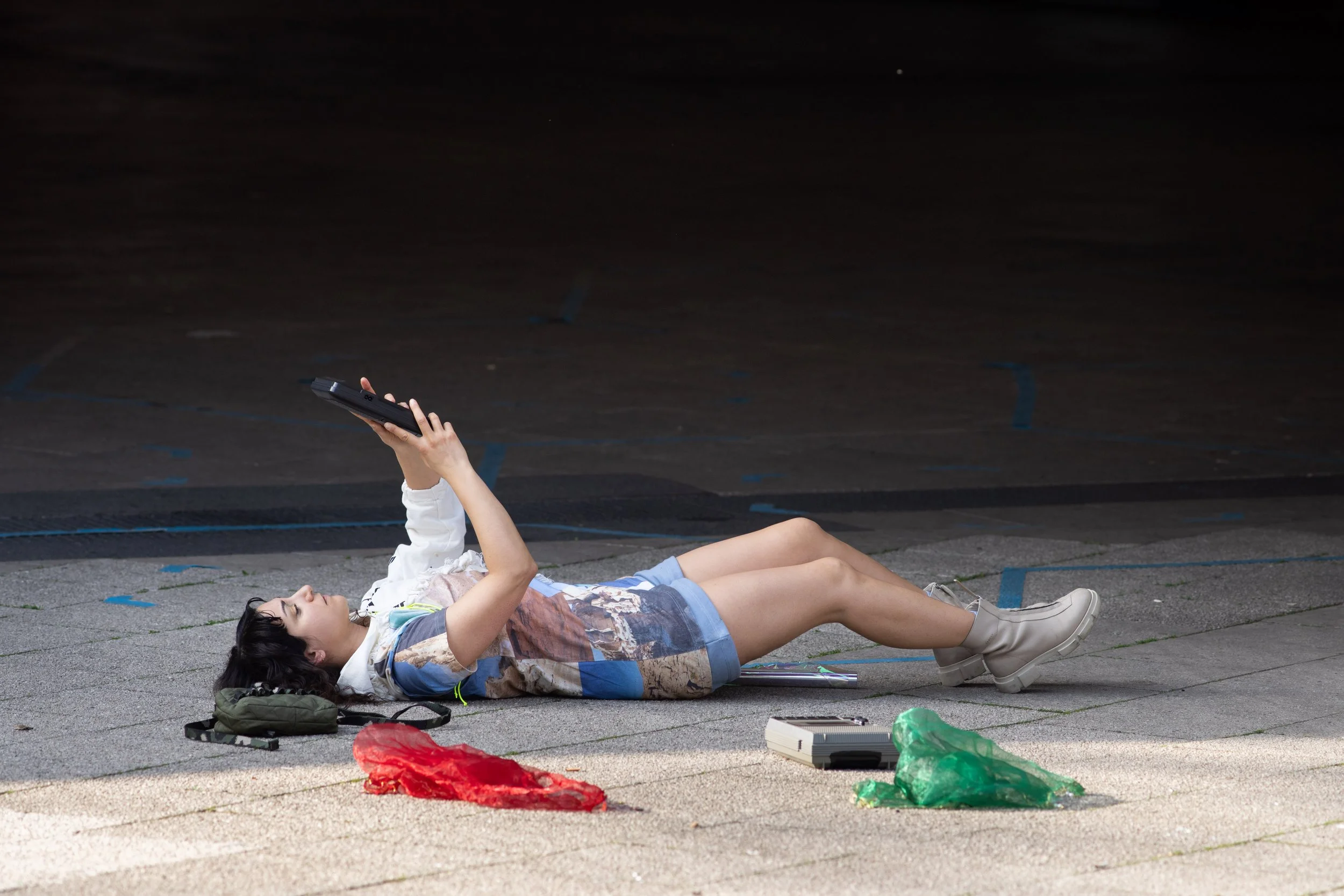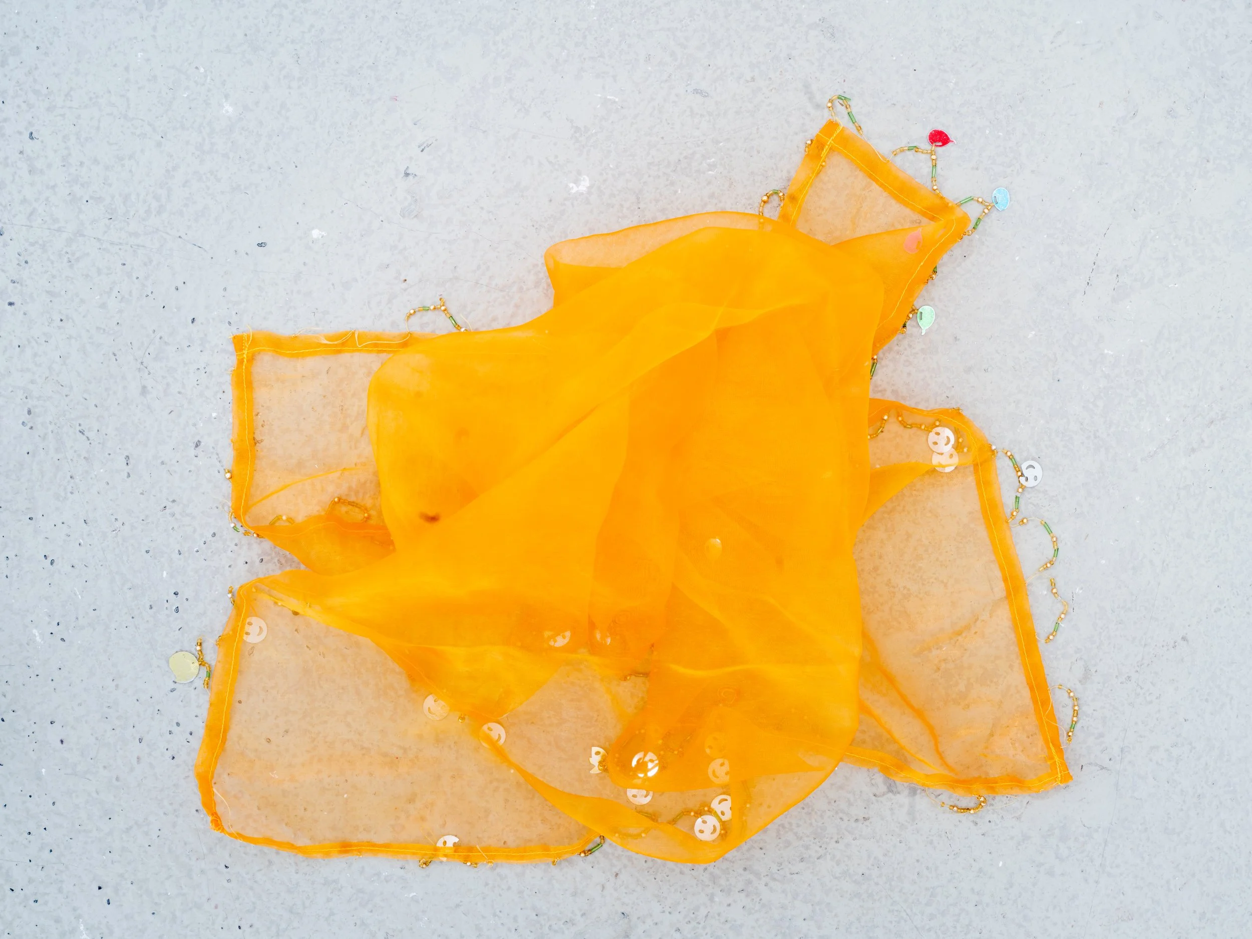Die dreiteilige Serie “Silexerê uber alles” bildet die Überbleibsel des Dorfes Silexerê ab, das 2020 neben Hasankeyf und zahlreichen anderen Orten unter dem Wasser des Ilisu-Staudamms gewaltsam zerstört wurde. Vor beiden Werken türmen verlassene Stoffskulpturen, die die Geister der Vergangenheit nur noch erahnen lassen.